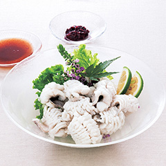 古来「豊の国」と呼ばれる大分県は、干潟の広がる豊前海や伊予灘に面し、瀬戸内海へと続く別府湾や、瀬戸内海の潮流と黒潮がぶつかる豊後水道と、多くの好漁場に恵まれています。豊後水道で獲れた天然の鱧を、熟練職人が骨切りにし、鍋用のだしと、かぼす入りのぽん酢に、薬味のもみじおろしや梅肉、刻みネギをセットでお届けします。ふっくらした食感と上品な甘みは、活きのいい天然物ならではのもの。しゃぶしゃぶ以外に、吸い物の具や、天ぷらにするのもおすすめです。