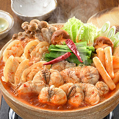 国産ふぐちりを韓国のチゲに仕上げたセットです。旨みと辛みのバランスが堪らないタレでふぐやトッポッキ、餃子を煮込み、鷹の爪でお好みの辛さに調節してお楽しみください。