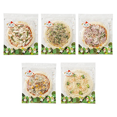 もちもちとしたピザ生地の上に、具材がたっぷりとのっています。オーブントースターで焼くだけでできる本格的な5種のピザをお楽しみください。