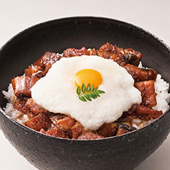 創業明治40年の〈大和養魚〉。浜名湖畔に広がる広大な自社養殖池で、徹底した水質管理とうなぎの健康管理を行い丹精込めてうなぎを育てています。刻んだうなぎ蒲焼と相性の良いとろろを組み合わせた、滋味豊かな「うなとろ丼」。お好みで卵を加えてもおいしくいただけます。