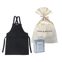 着るだけでサマになるシンプルな胸当て付きエプロンと、いつでも手軽に本格的な味わいを楽しめる1杯どりのドリップコーヒーをギフトバッグに詰めました。男女兼用のオールブラックのエプロンには、フロントに大きなポケットが2つ付いていて使い勝手も抜群。〈DEAN & DELUCA〉を代表するハウスブレンドは、フルーツの香り豊かな味わいの中に、ナッツやダークチョコレートを思わせるしっかりとしたコクがアクセントになり、心地よい余韻がひろがります。