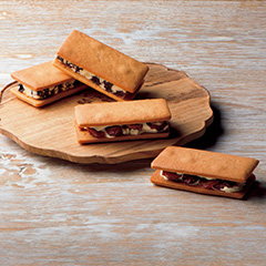 レーズンバターサンドの姉妹品として、リンベルがオリジナルで開発を依頼した「チェリーバターサンド」です。山形県産のさくらんぼを使用。さくらんぼを保存料なしで乾燥させ、さくらんぼの蒸留酒キルシュワッサーに漬け込んでから、北海道産発酵バタークリームとともに、素朴なクッキー生地にサンドしました。さくっとほおばると、ひと呼吸遅れてさくらんぼの甘酸っぱさが口中に広がります。「日本の極み」TOPへ