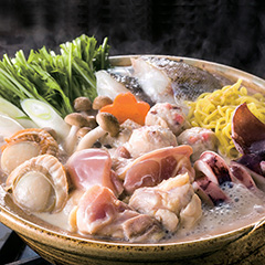 北海道産の鶏もも肉を主役に、いかやほたてなどの海鮮素材を詰め合わせました。鶏白湯鍋のたれは鍋の具材とよく絡み、鶏の旨みをたっぷりと味わえます。
