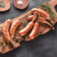 ギョウジャニンニク、チョリソー、プレーンの、コクのある3種類の無塩せきのソーセージです。