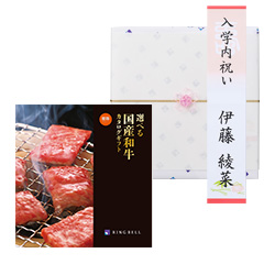 〈松阪牛〉〈米沢牛〉をはじめとするリンベルお奨めの名だたる銘柄牛を、「すきやき」「しゃぶしゃぶ」「焼肉」「ステーキ」といった食べ方別に掲載した国産和牛専用カタログギフト。※この商品は入学内祝い専用の商品です。ご購入手続きの際は、以下の項目をご選択・ご確認ください。〈Step1 お客さま情報入力〉・ご用途は「その他内祝い」をお選びください。〈Step2 ギフト仕様設定〉・お好きな包装紙をお選びいただけます。・のし上(表書き)、のし下(お名前)のご指定は短冊のしに反映いたします。掛け紙には印字いたしません。・のし上は「内祝い(蝶結び)」をお選びいただくか、「手入力」を選択後、「入学内祝い」とご入力いただくのがおすすめです。※のしのご指定がない場合、「内祝」の表書き、お名前は空欄でのお届けとなります。ギフトサロンのスタッフのおすすめ それぞれのブランド牛が料理用途別で選べるので、何度もらっても嬉しいと好評をいただいています。ハンバーグやビーフカレーなど、精肉以外の商品も充実しています。 カタログギフトで贈るメリットは、受け取った人が欲しいタイミングで頼めること。肉本来の美味しさをキープできるよう、配送にもこだわって冷蔵便でお届けいたします。 企業様のキャンペーン賞品として使っていただく機会が多い人気商品です。シズル感のある画像が魅力的ですよね。 カードタイプはカジュアルに贈りやすいということで、ネット注文が苦にならない若い世代のお客様は即決される方も多いです。どんな用途にもお使いいただけます。