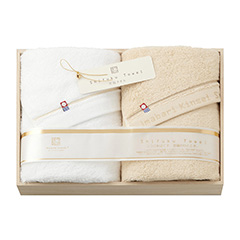 人と人を結ぶご縁の糸を、紡いで織った、ていねい仕上げ。手にした時の軽やかさ、ふんわり感で、違いがわかるタオルです。ほっとするような肌ざわりと、こころを込めて作られた高い品質。いいものをいつまでも使ってほしいから…。そんな想いを込めて、美しい木箱にやさしくそっと詰めました。その上質感は、どんな用途で贈っていただいてもきっと喜ばれる事でしょう。認定番号:第2012-464号