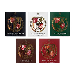 1956年、日本初のイベリコ豚の輸入店として大阪心斎橋に創業した〈IBERICO-YA〉。4年の熟成で旨みが凝縮されたレアルベジョータの生ハムや、脂身の甘みが詰まったサラミなど、生ハムの5種食べ比べセットです。塩辛くない日本人好みの味わいなので、ワイン好きな方などへの贈り物にいかがでしょうか。