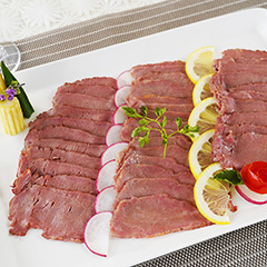 上士幌町の清涼な気候と快適な牛舎でハーブ入りの飼料を食べて育った「十勝ハーブ牛」のローストビーフです。赤身の旨み際立つもも肉を真空低温調理でやわらかくジューシィに仕上げました。塩こしょうのみの「プレーン」、香り高い味噌を使った「和風みそ」の2種類。