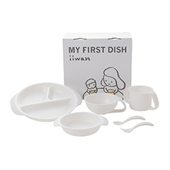 産業用に栽培されるデントコーンという品種のトウモロコシのでんぷん(糖)に乳酸菌を加えてできる「ポリ乳酸」で作られた食器セットです。食器はすべて曲線デザインで角がなく、すべすべの手触りです。離乳食初期から幼児食まで段階的に使えるお皿4点とスプーン・フォークを含む6点セットになっています。食器のカラーにはそれぞれ意味が込められており、ホワイトは純粋でまっすぐ、やさしい子になって欲しいという想いが込められています。