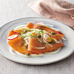 〈カムイチェプデリ〉は、1902年創業の「藤井水産」が手掛ける燻製商品の専門ブランド。ほどよく脂ののった紅鮭とチェリーサーモンの燻製を、グレープシードオイルとオリーブオイルで風味付けして仕上げ、3種セットでお届けします。サラダの具材の他、酒肴にもぴったりです。