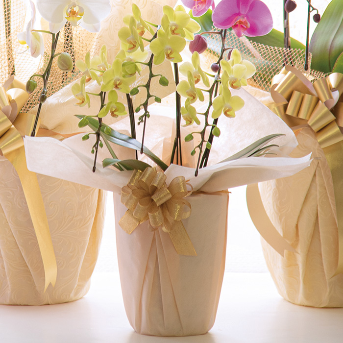 フラワーギフト 群馬県 マルイ洋蘭開発センター 胡蝶蘭 黄色ミディ3本立ち