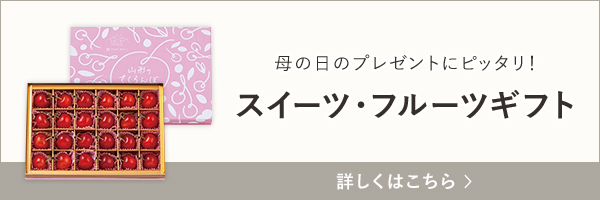 リンベルのフルーツギフトのなかでも、この時期とくに人気の高い「さくらんぼギフト」を掲載しています。赤く艶やかな大粒のさくらんぼは、「初物」のエネルギーにあふれています。その他「スイーツ・フルーツギフト」も合わせて掲載しており、大切なお母さんへの、一年に一度の贈り物にふさわしいギフトです。ぜひ、こちらの掲載ページをご覧ください。