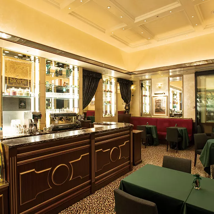 イタリア・トリノ最古のカフェ〈ビチェリン〉は、ニーチェやヘミングウェイなどの名だたる文豪に愛された老舗です。ホットチョコレート、コーヒーと、ふわりと泡立てられたミルク、異なる3層のテイストをゆっくり時間をかけて味わう看板メニュー「ビチェリン」をお楽しみください。