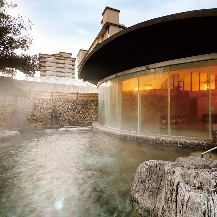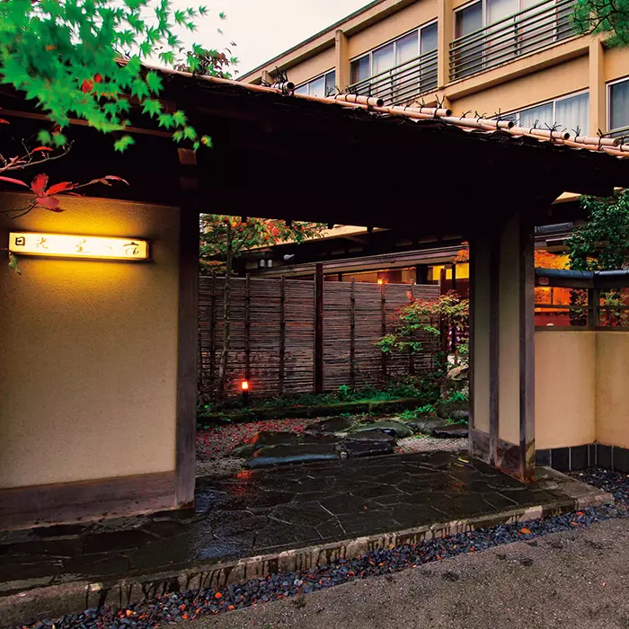 世界遺産「日光東照宮」「神橋」にほど近く、深い緑に囲まれた湯処〈日光 星の宿〉。総ひのき造りの「庭園風呂」で、日光の四季のうつろいを肌で感じつつ、すばらしい庭園を満喫できます。アルカリ性泉特有のとろりとまとわりつくような温泉をご堪能ください。宿名物のゆば料理を含む昼膳も魅力です。