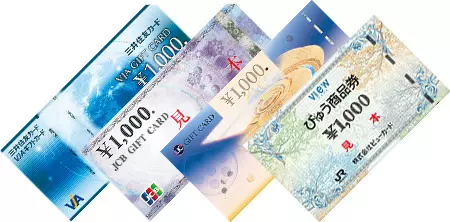 バリューチョイスの商品券は、各種ブランド(三井住友カードVJAギフトカード、JCBギフトカード、UCギフトカード、JRびゅう商品券)から選んでいただけます。日本全国のさまざまなお店やサービスで使用可能です。