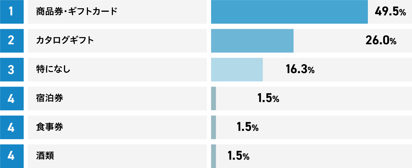 この結果から、内祝いには「自分で好きなものを選べるギフト」が人気であることがわかります。