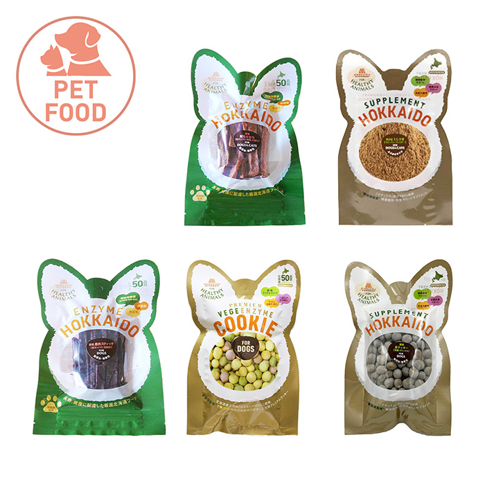 人間用の食材100%使用にこだわってペットフードを作る「ヘルシーアニマルズ」。健康維持や免疫力向上をサポートするためのサプリメントを含めた犬用のおやつセットです。元気がない子や老犬に特におすすめです。
