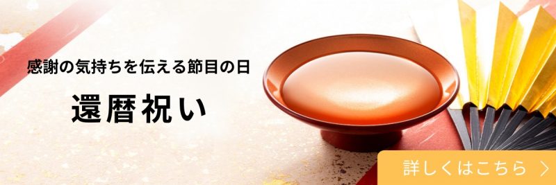 60歳をお祝いする「還暦」の名称は、「生まれた年の暦(元の暦)に還る」ことに由来します。「赤ちゃんに還る」ことをイメージさせることから、赤いちゃんちゃんこを贈り、それを着ていただいてお祝いするのが古くからのならわしでした。現在は、ちゃんちゃんこに限らず、テーマカラーの「赤」にちなんだギフトを贈るのが一般的となっています。