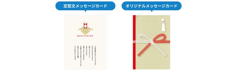 リンベルの無料メッセージカードは、お祝いにぴったりの13種類の定型文から選べるメッセージカード、写真も付けられるオリジナルメッセージカードを選べます。モダンな和風デザインとなっており、華やかさが特徴です。