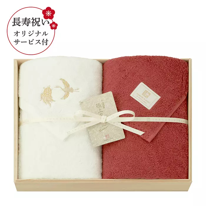 【長寿祝いオリジナルサービス付き】今治謹製 極上タオル 慶賀タオルセットA 赤