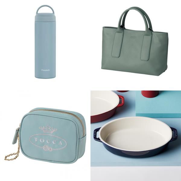 清涼感漂うブルーのグッズはいかがですか?ふたの開閉がしやすく、ステンレス真空断熱構造で保温保冷効果に優れている〈ピーコック〉の「スクリューマグボトル」、ふんわりとソフトな手触りで、正面にブランドロゴが型押しされている〈フランコフェラーロ〉の「トートバッグ」、ホールマークロゴ刺繍が光る〈トッカ〉の「ミニポーチ」、料理通や星を獲得したシェフたちの御用達といっても過言ではない鋳物鍋の有名ブランド〈ストウブ〉の「オーバルディッシュ」を揃えました。