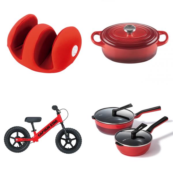 突起とポイントバイブが合体したリフトエアーバッグが底部から振動しながら押し上げ、形状の異なるサイドエアーバッグがグイグイ締め上げることで、脚まわりを立体的にマッサージしてくれる〈ポルト〉の「エアリーフット」、〈ル・クルーゼ〉の定番ともいえる、サイズの長い食材を調理するのに便利な楕円型の両手鍋「シグニチャー ココット・オーバル」、自転車に乗る楽しさとバランス感覚を養うことができる〈キャプテンスタッグ〉の「 トレーニングバイク」、平野レミブランド〈remy〉の大ヒット商品「レミパンプラス&レミパンミニセット」のリストです。情熱的だけど、ちょっとシックな感じも味わえる赤色のグッズを「推し」にお届けします。