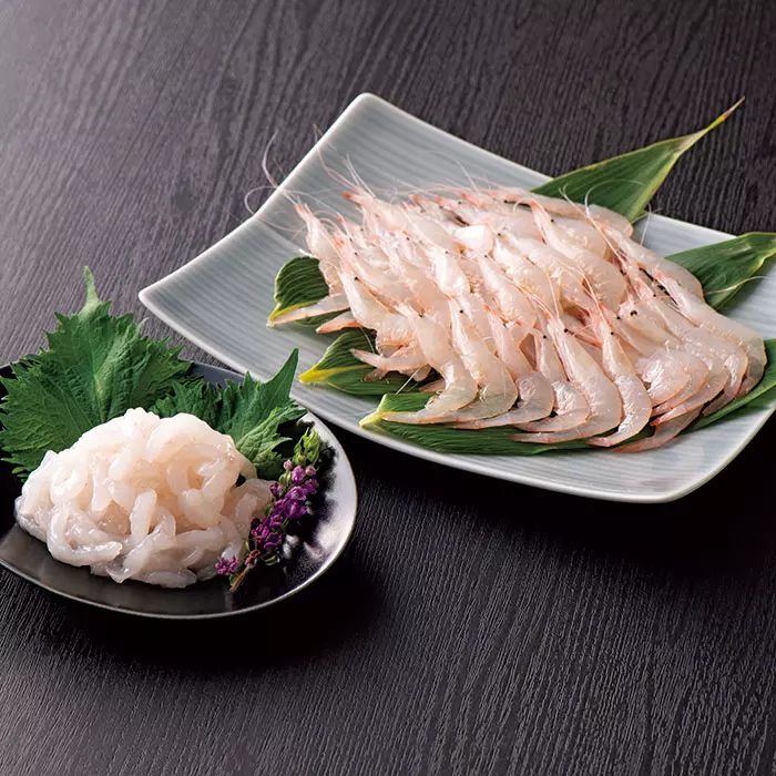 「富山湾の宝石」と称される白えびは、春のほたるいか、冬のブリと並んで、「富山県推奨とやまブランド」に認定されている海の幸。4月から11月までの期間、水深100~300mの水域に群生する白えびを、小型低曳網漁で漁獲する白えび漁は、世界で唯一富山県だけが行っています。
