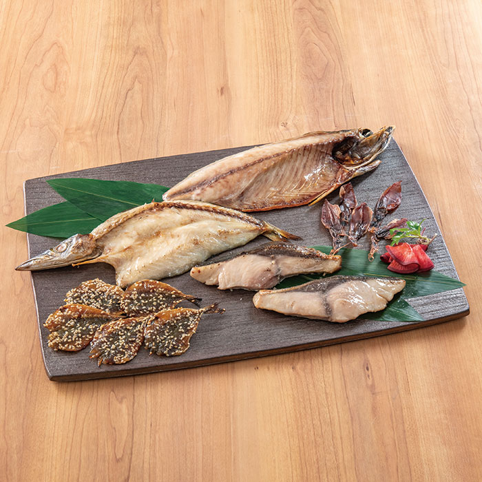 「きときと」とは、富山の方言で“新鮮な”という意味。“天然のいけす”ともいわれる富山湾には、立山連峰からの雪解け水や雨水が流れ込むため、餌となるプランクトンが多く繁殖します。なかでも氷見はその海底の地形から絶好の漁場といわれています。ここで獲れた魚介を沖合の船上で即時に氷水で締め鮮度をキープ。きときとな干物のセットをお楽しみください。