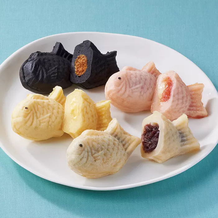 北海道の玄関口、新函館北斗駅〈ほっくる〉内にある人気のたい焼専門店の、やわらかくてモチモチのたい焼き4種。定番商品のつぶあんやカスタードに加え、いか墨入りの真っ黒い皮で包んだキーマカレー、女性に大人気の明太子モッツァレラと、見た目も味わいも楽しめます。