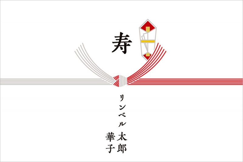 お祝い事の水引は、色は紅白、本数は5本が基本です。贈り物に応じて7本結びを用いる場合もあります。