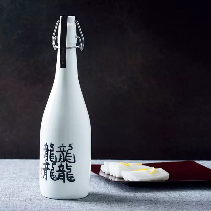ボトルに書かれているのは「龍」を4つ書いて、「てつ」と読まれる漢字。この漢字は画数が多く“おしゃべり”という意味を持ち、仲間とおしゃべりをしながら、楽しく飲んで欲しいという想いから生まれました。