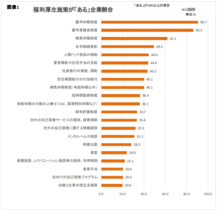 福利厚生として永年勤続表彰を実施している企業は約5割
