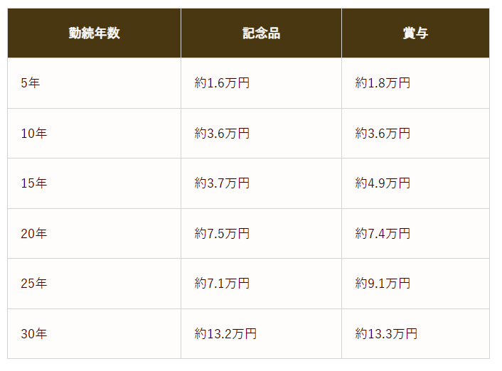 表彰のタイミングは企業により異なり、10年・20年・30年の間隔が一般的ですが、5年刻みの場合もあります。各種福利厚生制度の予算や企業の規模などに応じて決まる傾向にあるようです。