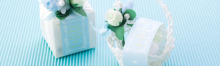 メインギフトに添えてお渡しするお菓子のギフトです。感謝の気持ちを込めた贈り物であるのと同時に、披露宴に参加していただいたことへのお土産としてお渡しします。