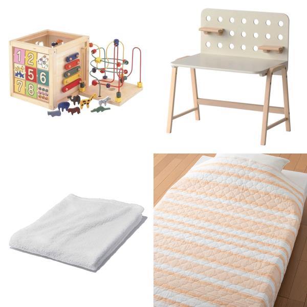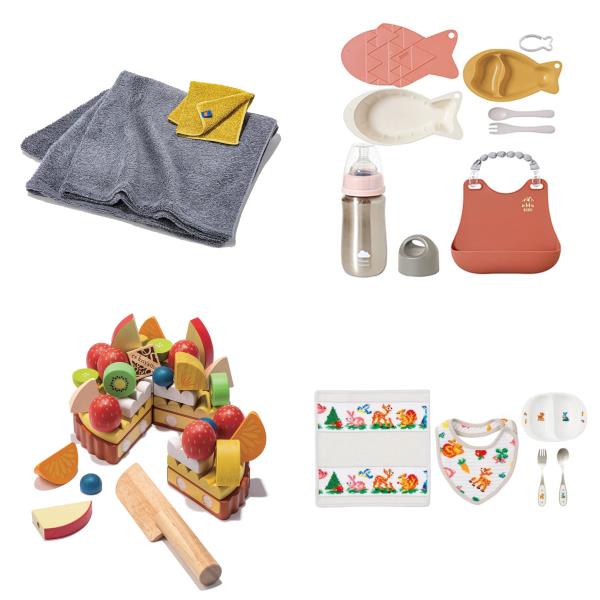 あそび箱やキッズデスク、ボディバスタオルなど、豊富なアイテムが掲載されています。祝福のメッセージを込めた素敵なギフトを贈りましょう。