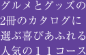 特に本体価格3,000円以上の11のコースは、グルメとグッズそれぞれの専門カタログを2冊セットでお届けします。もらった方は2冊の豊富な掲載アイテムから、「本当に欲しいもの」を1点お選びいただけます。