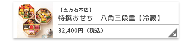 海の幸、里山の恵みを活かした端正な料理で富山を代表する高級料亭「五万石本店」。全国の美食家をうならせてきた一方で、その美味しさを全国に届けたい想いからおせち作りにいち早く取り組んできた、お取り寄せおせちのパイオニア。デザインにこだわった重箱に、富山ならではの旬味を詰め合わせた豪華三段重をお届けします。日本酒からシャンパーニュまで、和と洋どちらでも美味しくいただけるラインナップを、ぜひご賞味ください。