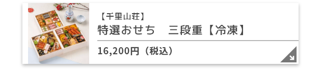 様々なメディアで冷凍調理食品の高い技術が評価され、各種メディアでも取り上げられる、富山県の千里山荘とリンベルのコラボレーションで誕生した「千里山荘」特選おせち。冷凍おせちに特化した食材選びや調理法で、山海の幸に恵まれた富山ならではの伝統料理を大切にしながらも、日本各地の美味を掛け合わせた創作料理をラインナップ。バラエティに富んだごちそうが詰まった限定おせちをお楽しみください。