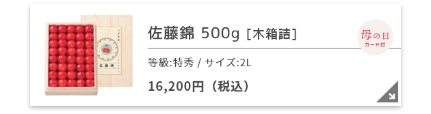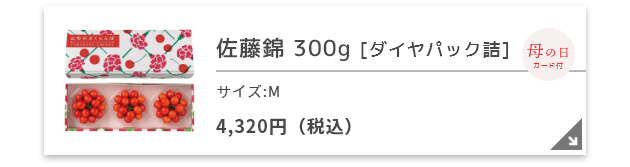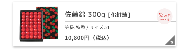一般的に、さくらんぼの旬は6月からとされますが、リンベルでは母の日(5月10日)に間に合うさくらんぼをご用意しました。母の日専用オリジナルメッセージカードや、一部商品には専用パッケージをお付けしてお届けいたします。