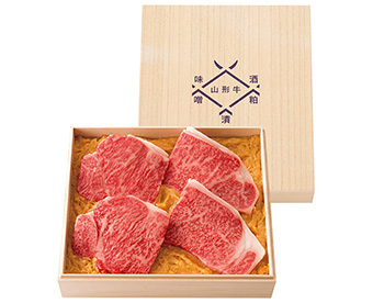 明治時代、山形の美味を東京に届けるため、保存の目的で考え出されたのが味噌漬の始まりです。味わい豊かな山形牛の厚切りサーロイン部位を酒粕味噌漬にしました。